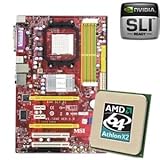 | Product Description MSI K9N SLI-F Motherboard CPU Bundle Powerful and affordable, our new MSI K9N SLI-F V.2 motherboard delivers brilliant SLI graphics for systems running on 64-bit AMD Phenom processors (Socket AM2+) AMD 64-bit Sempron, Athlon 64, and Athlon 64 X2 (AM2) processors with 800/1000 FSB. Based on the NVIDIA nForce 570 LT SLI chipset, this versatile ATX platform supports DDR2 800+ memory up to 8GB, PCI-E 16x (with SLI technology both slots operate at 8X speed), PCI-E x1, 7.1-channel HD audio, Gb LAN, RAID (0, 1, 0+1, & 5), SATA2, Live Update, MSI Dual CoreCenter, and DOT. Ideal for gaming and high-definition multimedia entertainment, the MSI K8N SLI-F V.2 mainboard offers superior performance at a remarkably low price tag. Take advantage of this great offer! Buy this motherboard in a bundle with the AMD Athlon 64 X2 5800+ 3.0GHz dual core processor! |